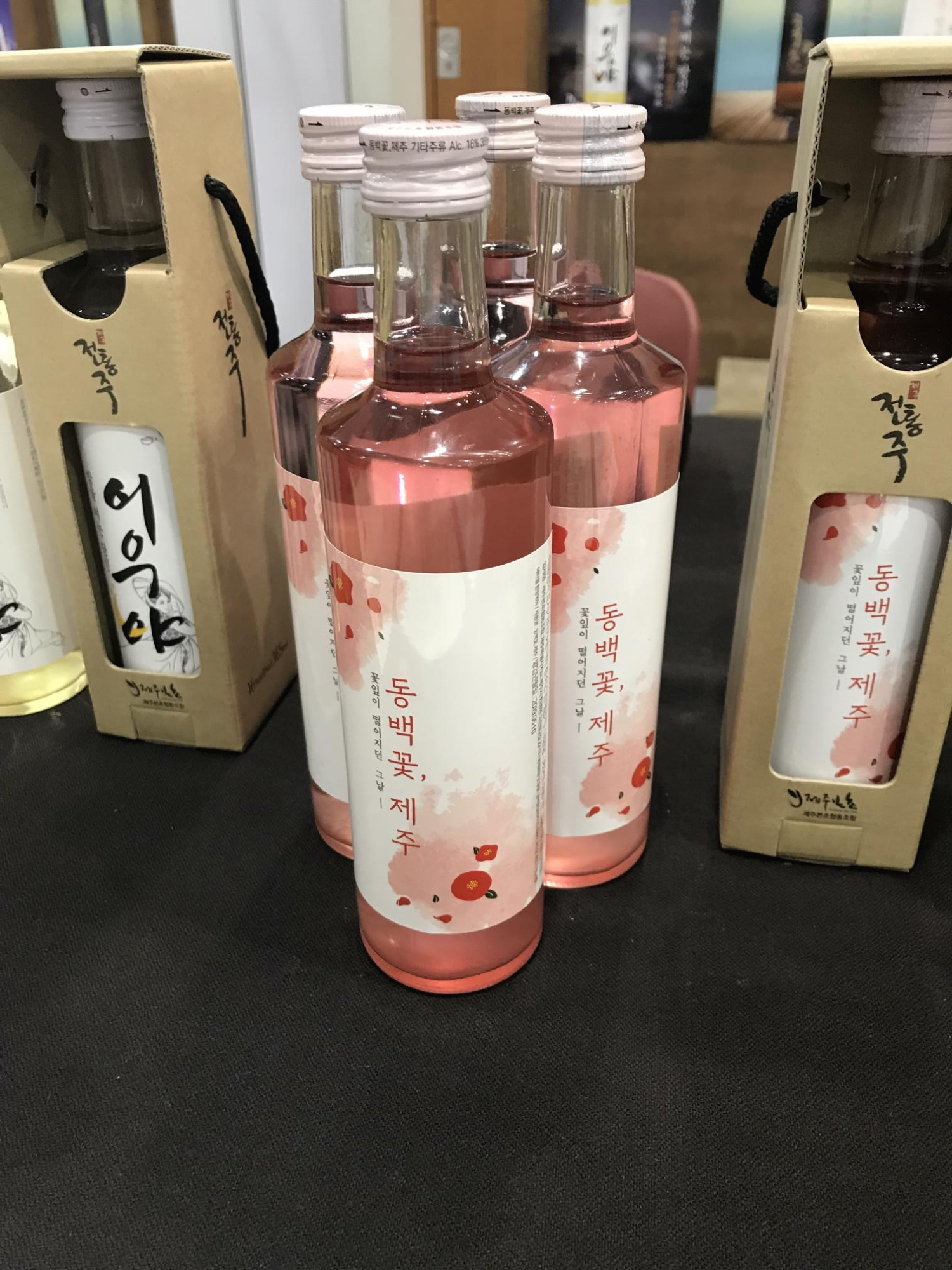 제주 ICC는 학회 여러 가지가 동시에 개최되기도 하고, 다양한 전시회나 행사가 함께 진행된다. 이번엔 제주푸드 쇼가 열렸다. 입장권을 구매해야 입장이 가능하지만 제주푸드 쇼 카톡 친구 추가를 하면, 경품도 공짜로 주고 입장도 공짜로 가능했다. 다양한 업체에서 여러 가지 음식, 건강제품을 팔았다. 이곳저곳 돌며 노니 샘플도 먹어보고, 보말죽이라는 것도 먹어보았다. 둘 다 거의 구매하고 싶었는데, 노니는 너무 비싸서 포기했고, 보말죽은 나중에 식당에서 먹어보자는 생각에 포기했다. 전시장 한쪽에 주류도 전시하고 있었다. 모두 시음이 가능했지만 취하면 안 되기 때문에 정말 마셔보고 싶은 딱 한 가지만 마셔보았다. "동백꽃, 제주"라는 와인을 마셔보았다. 그냥 분홍색 소주 증류주라고 생각하며 마셨는데, 나중에 찾아보니 와인이었다. 어쩐지 맛있더라. 심지어 제주에서 일어난 비극적인 사건인 제주 4.3 사건을 헌정하는 술이라 한다.