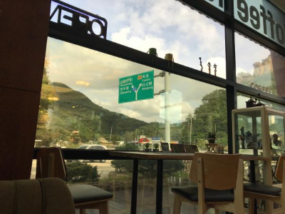 잠시나마 미시령을 통과해서 갈지, 한계령을 통과해서 갈지 친구와 논의했다. 인터넷에서 검색해본 결과 한계령으로 가면 내 목숨이 위험할 것 같다는 생각이 들었다. 그나마 난이도가 덜 한 미시령으로 쭉 가기로 했다. 진부령과 미시령의 갈림길에 아름다운 폭포가 떨어지는 곳이 있길래 역시 사진을 남기고, 근처 분위기 좋은 카페에서 천천히 음료를 마시며 에너지를 보충했다. 카페 사장님께 여쭈어보니 저 폭포는 인공 폭포란다. 모터를 돌려 폭포수를 만드는 곳인가 보다. 하지만 강원도라서 이것도 더 특별하고 더 아름답게 느꼈다. 이곳에서는 나와 친구 외에도 많은 관광객이 멈추어 사진을 찍고 갔다.