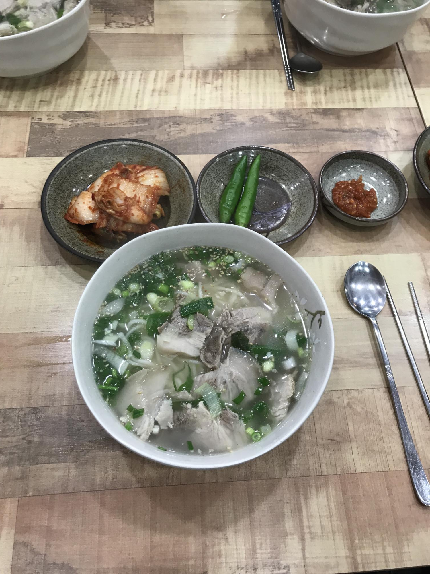 다음 날 학회장에 들렀다가 점심으로 고기 국수를 먹기로 했다. 후배 한 명이 제주에 가기 전부터 올래국수 노래를 불렀는데, 학회장과 멀기 때문에 그 대안으로 그냥 고기 국수 집으로 갔다. 국숫집 이름이 기억이 안 나지만 평일에도 사람이 많았다. 여행객으로 보이진 않고, 그냥 동네 사람들이 많이 온 걸로 보아 맛집으로 확신하고 고기 국수를 시켰다. 국물에 간이 세지 않은 점이 좋았다. 그리고 면발을 만들 때 계란을 많이 넣었던 것인지 면이 맛있었는데, 쫄깃해서 식감도 좋았다. 다만 함께 준 매운 고추를 때려 박았더니 그거 먹고 미각이 둔해져서 다 먹을 때쯤에는 맛을 즐기지 못했다.