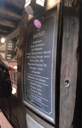 유니버설 스튜디오(Universal Studios Florida)에 방문했을 때는 한참 돌아다니다가 야밤이 되었을 때, 해리포터 기차 타는 곳 옆에 있는 곳에서 버터비어를 먹었다. 애들도 신나게 노는 이 놀이공원에서 아이디체크 하나 없이 술을 팔리가 없는 데, 역시나 버터비어 따라주는 점원에게 물어보니 알콜이 없는 음료였다. 궁금해서 차가운 버전과 뜨거운 버전 두 가지를 모두 마셔보았는 데, 아인슈패너에서 커피 씁슬 한 맛이 빠진 맛이라고 보면 될듯 하다. 차가운 건, 위에 크림이 올라있어서 그렇다. 당과 지방이 매우 충만한 음료 같은 데, 두 잔 다 마시고 나니, 내 옆구리에 손잡이가 바로 불러오는 게 느껴질 정도였다.